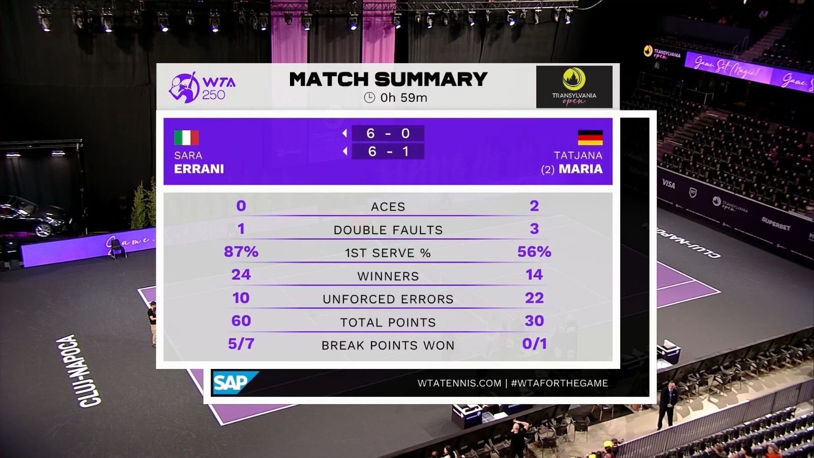 Krejcikova wins by retirement 62 1-0 over Sorribes Tormo