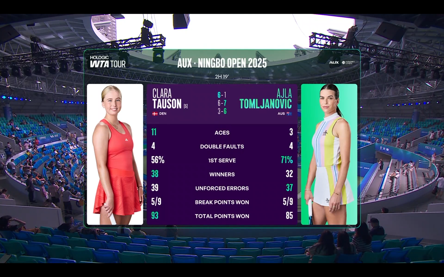 I watched the 1st set, where Clara was in complete control of the match 61 and thought Clara would win in straight sets, agree Clara needs to find consistency, a match she will look back on and realized she should have wonTauson in a lack of consistency right now. Starts well and loses steam and players like Tomljanovic uses their experience and have the weapon in these cases. But Clara has now reached 350 aces - quite impressive - and on a third place in that race