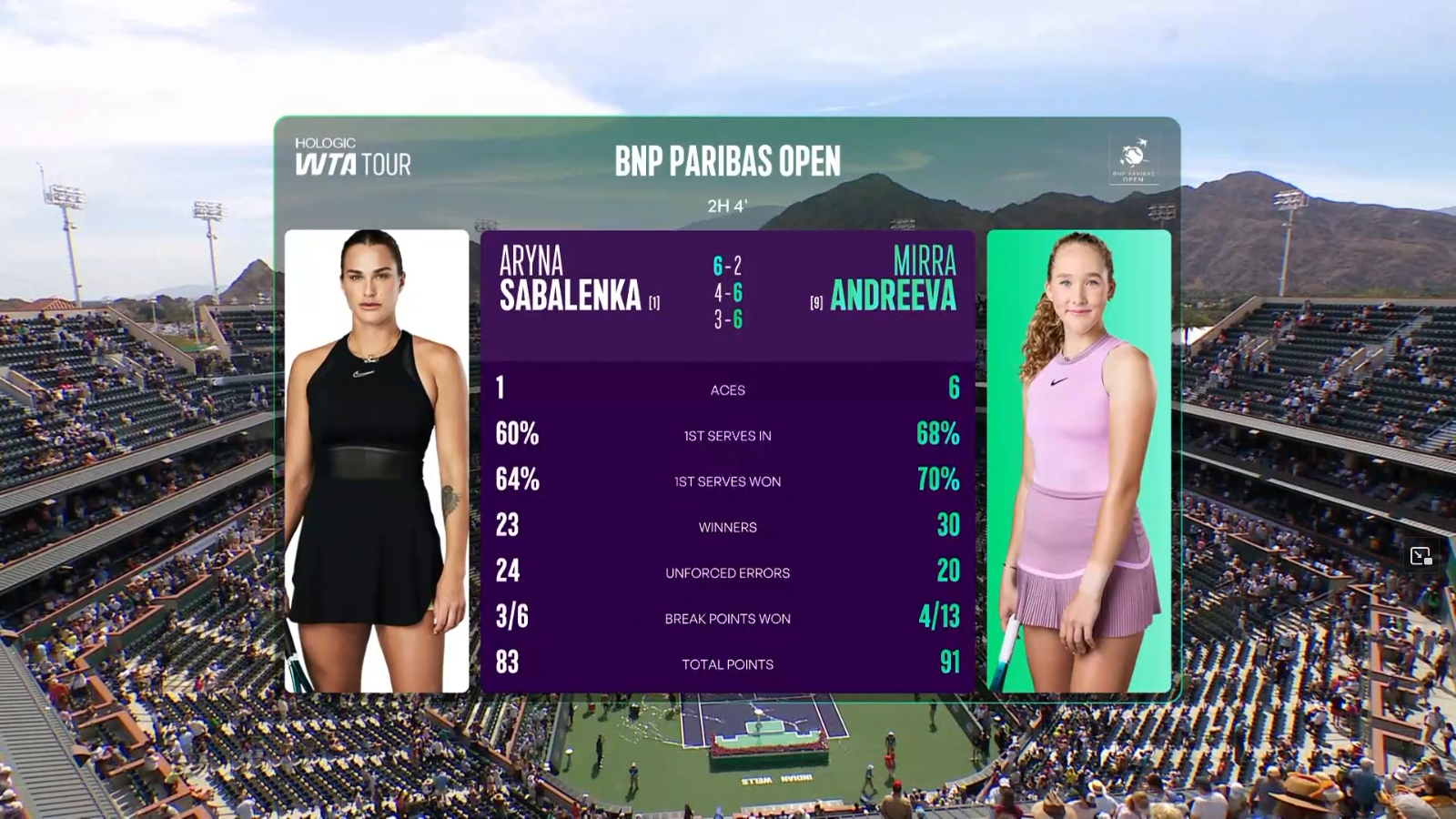Saba takes the 1st set 62, a impressive performance so far