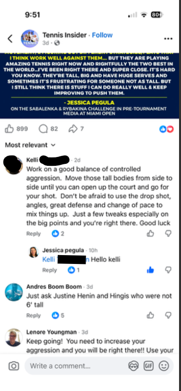 I see Jess took my advice verbatim and bossed Elena for a set and half then dropped serve, got negative and went downhill from there. I wrote this in response to a post she put out there last week about facing Saba and Elena.