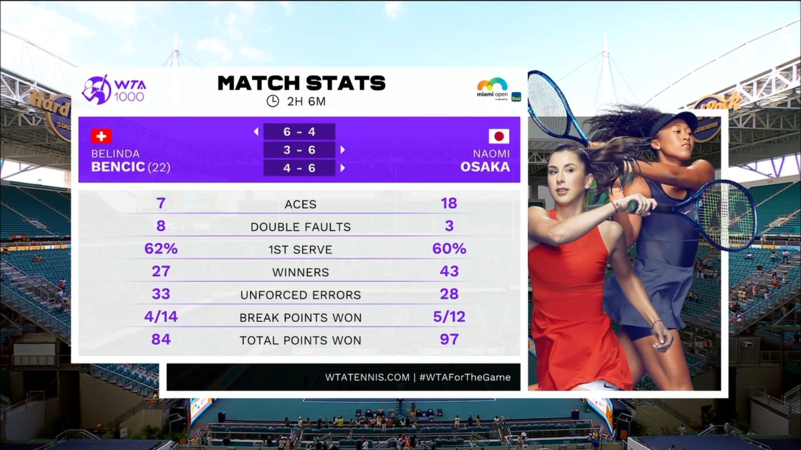 Osaka well deserved win over Bencic after 3 defeats - 18 aces most aces in 2022