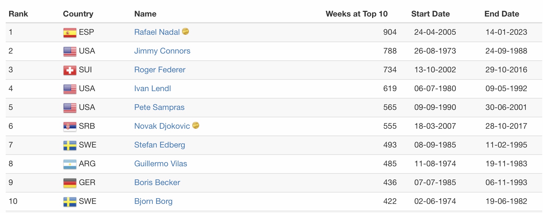 Thanks for that. I certainly don't want Rafa to come back before time for the sake of this particular streak. It's still a record, by rather a lot. But you're saying that with some help, he might stay in the top 10, even if he doesn't come back by Miami?