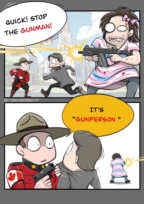 Not only this but the police chief referred to the killer as "female". Because that is what he identified as. Now, female is a word that defines sex, not gender. Imagine if this person escaped unharmed. Would we be on the lookout for someone with a vagina? Anyone with a penis would be off the hook? This is just another example of PC language and how it can actually be dangerous. Just say, the killer is a trans woman if you must. But do not use the word female.