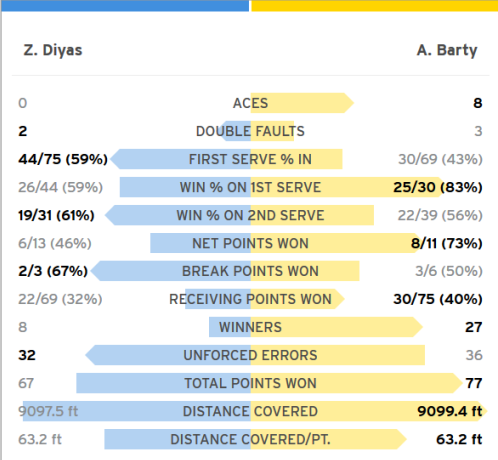 Would you have the stats for Ash Barty match at all? thanks in advance if you do