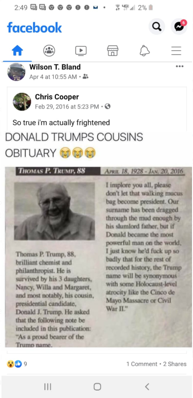 All that said, let's assume for a moment that you do hold Bwoken's position that the war in Iraq was "genocidal" or an example of the USA's "genocidal war ideology." Well does the Lebanese ignoramus even know that Donald Trump ran on a non-interventionist platform in 2015 and 2016? Does he know that he called out George Bush for lying about the war in Iraq to Jeb Bush's face with Republican donors booing him at a debate?