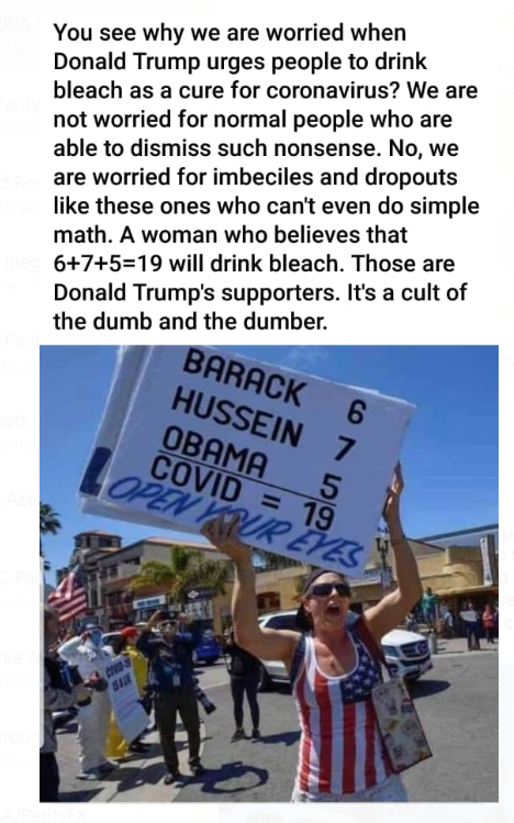 It's funny how I posted a pair of articles yesterday - one about how allowing people to go to parks promotes healthiness and one citing two actual doctors who think the shutdowns should end on public health grounds. Of course, BwokenWooWace had nothing to say about that. And that's because he doesn't actually care about any scientific discussion.